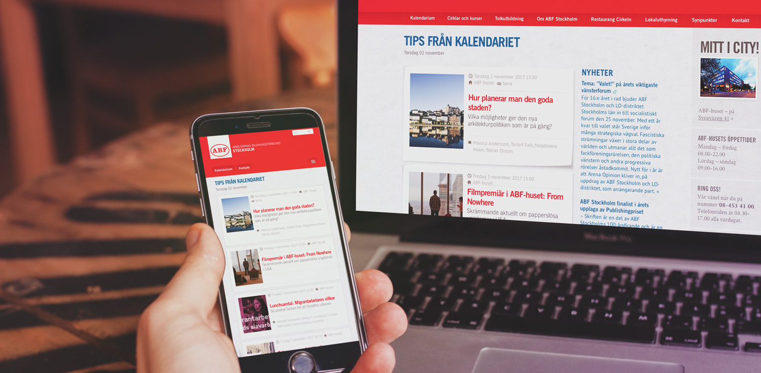 Strollo & Co har ett långtgående samarbete med ABF Stockholm kring deras digitala kommunikation. Vi har byggt ett flertal webbplatser – bland annat abfstockholm.se där användaren enkelt kan hitta i det breda utbudet av föreläsningar och andra aktiviteter.