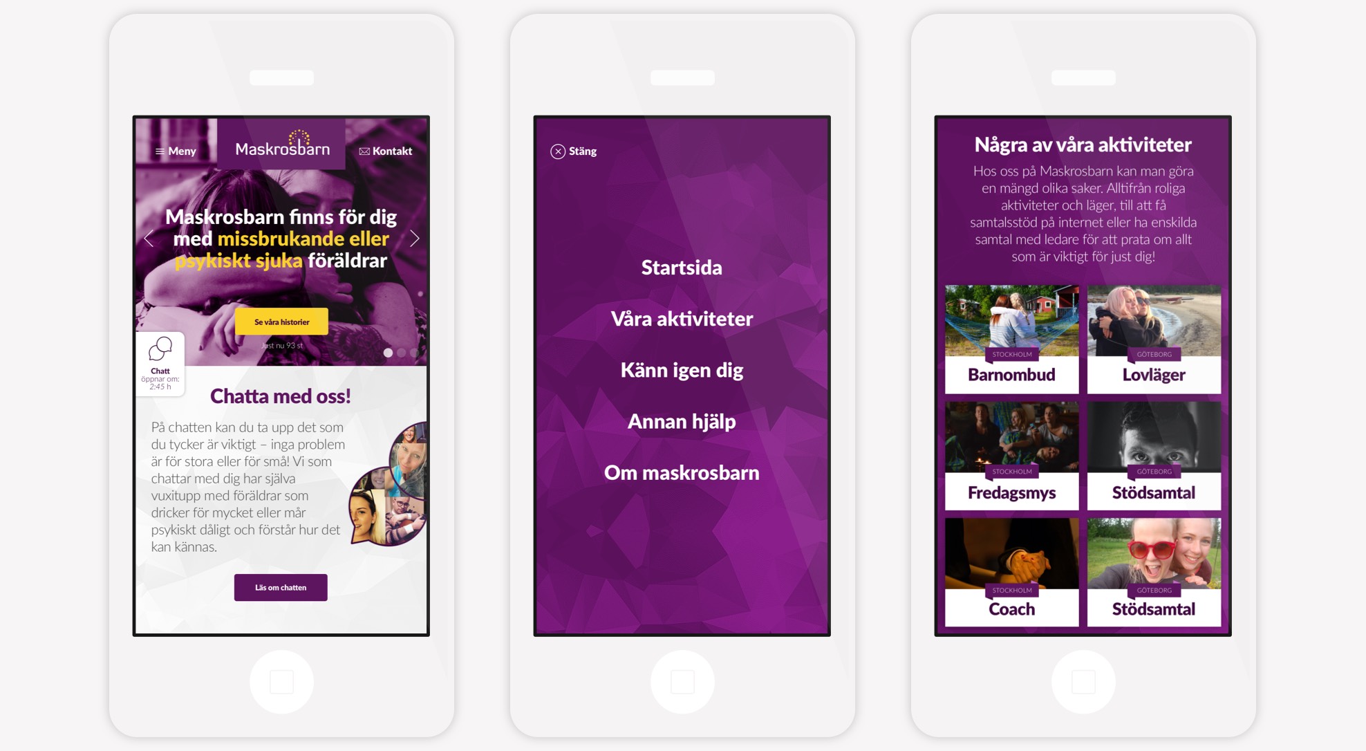 Det som börjar som röriga illustationer och anteckningar på en whiteboard, resulterar sedan i klickbara prototyper, där Maskrosbarn kunde, tillsammans med ungdomarna klicka runt på webbplatsen. Utifrån den feedback Strollo & Co fick in, uppdaterade och optimerade vi de klickbara prototyperna. När dessa var godkända gick vi in i nästa fas av produktionen – designfasen.