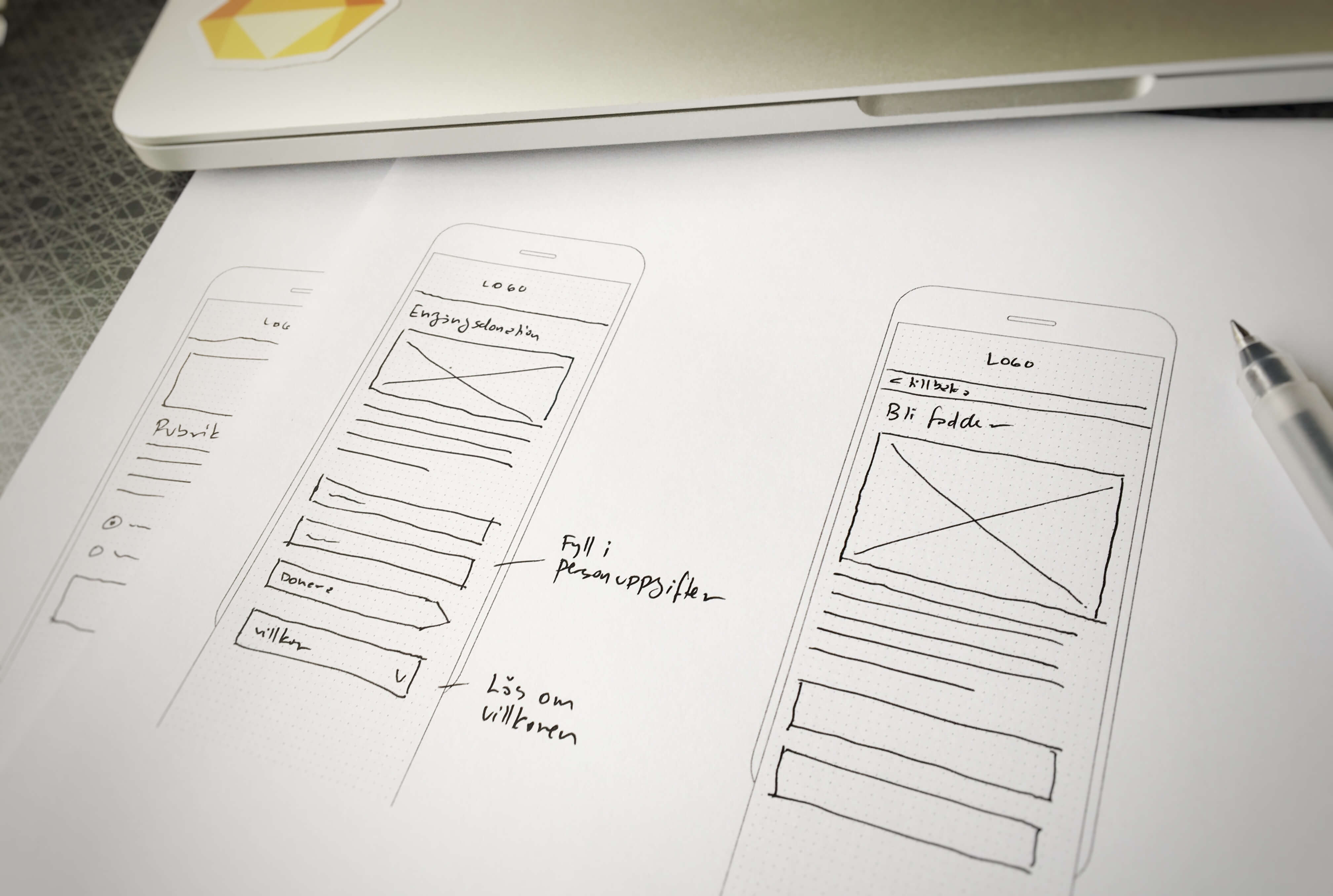 Några tidiga konceptuella skisser, innan det mer omfattande wireframe arbetet.